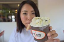 グストは先に料金を支払うシステム。一番小さいSサイズのカップがRp.22,000(190円程度)で、なんと2つのフレーバーを楽しむことが出来ます!他のジェラート屋さんに比べてボリュームがあるので、ミディアムサイズなんかを頼んでしまうと1人で食べ切るには苦労するかもしれません。