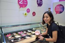 フローズンヨーグルトはプレーンの他に、抹茶やマンゴー、ストロベリー等その日によって味のバリエーションが違うようです。気になる味は小さなカップに入れてテイスティングさせて貰えるのが嬉しいポイント。