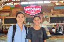 中でもスミニャックのオべロイ通りからすぐにあるスキップジャックはハンバーガーとステーキが美味しいお店。ココナッツオイルで有名なCOCONAの真上に位置するこのお店は全席オープンエアですが、風通しが非常によく、30℃を超える熱い日でも心地よく食事を楽しむことが可能です。