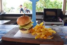 広々とした店内は完全なオープンエアーで、サーファー用の洗い場、卓球、ビーズクッション席など、オーナーのこだわりが随所に現れています。