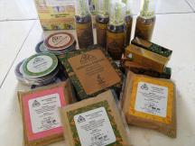 ナディスハーバルの店内にはオーガニックプロダクトのコスメなどが所狭しとおかれています。シャンプーや石鹸、フェイシャルグッズの他にも、ボディーケアグッズやヘアケア用品まで。人気のココナッツオイルやサプリメント、お茶やジャムウ(インドネシアの民間伝承薬)などございました。