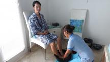 白とターコイズブルーを基調にした店内は、マッサージルームが2つにフットリフレクソロジー用のゆったり座れるチェアが2台と大型のスパではありませんが、その分グループや家族での利用の際は貸し切りにもできるとのこと。