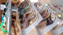 底にコルクが入っていて、履いているうちに足の形に馴染んでくるのが特徴です。形や素材も日本で見るより豊富なのが嬉しいですね。