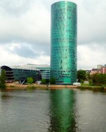 場所はフランクフルト中央駅近くのマイン川沿いで、Westhafen(ヴェストハーフェン)と呼ばれる地区。トラム12・16・21番Baseler Platz駅から徒歩2分です。