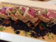 ここからはタモン湾一面が見渡せるようになっており、サンセットタイムに行けばカクテルを傾けながらオレンジに染まるサンセットが見渡せます。陽が落ちた後は暗闇に光るグアムの夜景を一望。まさにグアムにありそうでなかった夜景のきれいなレストラン、夜景を見るなら絶対お勧めです。窓際のテーブル席は一面窓貼り。テラス席も外にあり、夜景を眺めつつ夜風に吹かれながらのんびり食事が出来ます。店内にはもちろんバーカウンターも。ちなみにグアムはレストラン内全席禁煙です。煙草を吸う人はテラス席がお勧めかもしれません。予約時は必ず窓際席をリザーブする事!