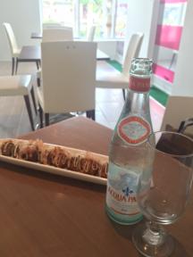 飲み物は…食べ物の味を更に向上させると言う「アクアパンナ」ウォーターを!たこ焼きを豪華に御洒落に頂いてきました。ちなみに、この素敵なお水。口の中をサラッとしてくれるため食べながらお口の中をリセットしてくれるんですって!