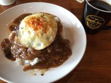 今回は、ウェイトレスのお姉さんにお勧めされた「ロコモコ$13.99」にチャレンジ。ご飯の上に自家製ハンバーグ、ポルタベーロマッシュルームとオニオンたっぷりのデミグラスソースがかかっています(画像参照)。そして上には目玉焼き!ハングリーな貴方には絶対お勧めです。