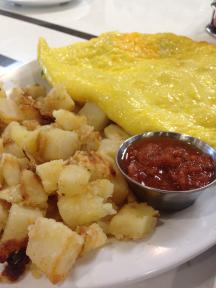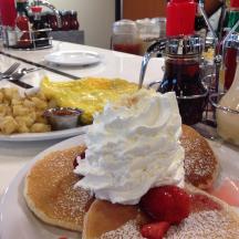 名前の如く、卵を使って作るアメリカンブレックファーストがメニューに勢揃いです。卵3個を使って作られるオムレツは一人じゃ食べきれないほど。同じくパンケーキも5枚出てきます。