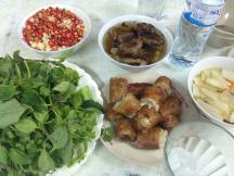 こちらのブンチャーは、ブン(細い米麺)と野菜と肉のつけ汁と野菜のつけ汁とネム(海鮮揚げ春巻き)がセット出てきます。