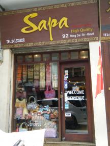 ハノイの旧市街にはサパの少数民族が作った土産物の店があります。その名もずばりSAPA。場所はホアンキエム湖北側交差点の西方向の通りHang Gai通りに。店内はすべてサパの少数民族モン族の手作りの商品です。原色の細かな刺繍の施された色鮮やかな商品の数々にまず目を奪われます。