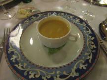 重厚な建物を入ると、タキシードを着たウエーターが丁重に迎い入れてくれます。内部は1、2階がダイニング・スペース。クラシカルな家具、趣味の良いカラーコンビネーションでまとめたカーテンとタペストリー、2階の天井いっぱいに施されたスタンドグラス、どれを取っても格調高い雰囲気に包まれています。