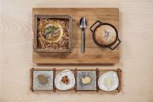 メニューはいたってシンプル。季節ごとに変わる5品からなるコースメニュー(お一人様121ユーロ)のみです。このコース料理には、プラス17ユーロでチーズの盛り合わせを付ける事が可能。ワインとのペアリングだと267ユーロ、少しランクの高いワインとのコースだと317ユーロです。