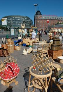 一階は新鮮な肉・野菜・魚を扱う専門店が占めており、日常の食生活をうかがい知ることができるし、二階にはマリメッコのアウトレットショップがある。加えて手作り小物のデザインショップが並び、気の利いた土産品が手に入る。