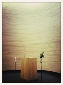 この2012年に開設され、建築賞も受賞したというモダンな礼拝堂は、実は木造。