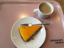 マンゴチーズケーキとコーヒー。合計8.4ユーロ。ヘルシンキのカフェでセットで頼むとこのような感じ。