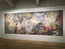 展示されているフレスコ画には、なぞ解きのような楽しさがあるので、ギャラリー内に用意されているプラスチックの解説ボード(日本語もあります)と照らし合わせてじっくり見てください。都会のパーティと田舎のパーティが描かれたフレスコ画の中には、トーベ自身が群衆の中にいますし、テーブルのそばにはムーミンの姿も見つけることができます。