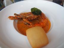 グリルされた大きなエビに、ココナッツミルクやレモングラスなどが