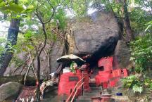 アクセスは少し不便で、ボーウェンロードフィットネストレイルというウォーキングトレイルの途中にあるので、車で行くことはできません。トレイルの入口から灣仔やビクトリア湾の景色を眺めたり、森林浴を楽しんだりしながら歩くと「婚縁岩」と書いてある赤いペンキで塗られた岩が見えてきます。この入口から階段を上って行くと廟があり、日によってはお線香を売っていることもあります。
