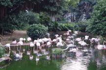 中国式の庭園や、珍しい鳥が見られる野鳥園、フラミンゴや鴨などが悠々と過ごす池、