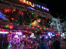 パトンビーチの中心部。ビーチロードとソンロイピーロードをつなぐソイバングラーは、プーケット一番の歓楽街。夕方6時を過ぎると歩行者天国になり、暗くなるともに道沿いに軒を連ねるオープンバーや、ゴーゴーバーがオープンし始めます。9時過ぎから人が増え始め、世界各国からの観光客を目当てに、綺麗に着飾ったMr.レディーや、客引きや物売りがごった返し、通りはまるでカーニバルの様な様相。賑わいのピークは11時~0時頃。