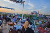 そしてこのSeven Hills Hotelの一番のオススメは、何と言っても屋上テラスから見える絶景。室内のレストランからでもマルマラ海を一望できる素敵な景色が目の前に広がっていますが、テラスから見る景色は格別。アヤソフィア、ブルーモスクをここまで身近に一望できるホテルは他にはないでしょう!