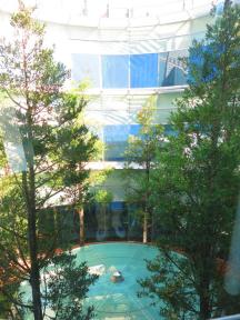 光の透過率が高く、そして6階から建物中央に樹が植えられ、