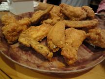 バッファローウイング(手羽先のから揚げに辛いソースを絡めたもの。)という