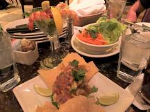 私たちがオーダーしたのは、シュリンプカクテル、マグロのターター、クラムチャウダー、本日のスープ、サラダ、照り焼きチキンのピザ、リブアイステーキ、フィレステーキ、二種類のサイドディッシュを大人4人でシェアしました。(多すぎでしたが..)