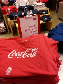 タンブラーを始め、リサイクルされたプラスティックで作られたTシャツや、