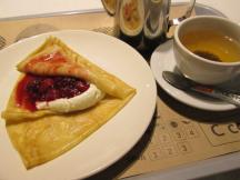 ブリヌィと飲み物だけであれば200ルーブル前後で気軽にティータイムが過ごせる。メニューには他にもスープやサラダ、パスタなどもある。昼時には139ルーブルのランチセットもあるので、お腹が空いているときにも利用価値あり。