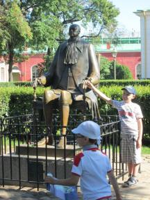 最後に、要塞の敷地内でピョートル1世の像を見つけてほしい。彼の手に触わって願い事をすると叶う、と言われている。ロシア人の間では、ピョートル1世の膝の上に座ると幸せになるとも言われていたが、最近柵で囲われてしまった。
