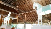 中央にたつ木製の馬が夜間はライトアップされていて圧巻。