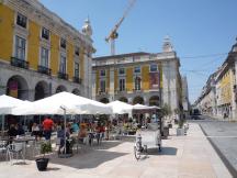 広々とした広場の中心にはポルトガルの王様ドン・ジョゼ1世の銅像が立ち、周りを囲むようにカフェやレストランが軒を並べます。