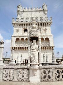 ジェロニモス修道院と同じようにマヌエル様式を採用した白く美しい塔です。
