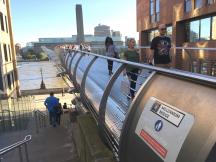 2000年6月に華々しくオープンしましたが、横揺れが激しく危険なため閉鎖に。そして、再び渡れるようになったのが2002年2月、補修費用は9億円もかかりました。今では安全性はまったく問題がないのですが、やはり揺れます。風の強い日などは歩いていてちょっとコワイことも……。