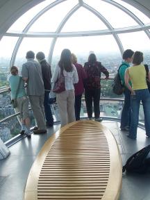 観覧車は高さ135メートルで、30分かかって一周します。25人が乗れるカプセルは重さ1トン、これが32台付いています。ガラス張りでしかもこのカプセルはぶら下がる形ではないので頂上部分に来ると周りに遮る物が何もなく、360度の景色が楽しめるようになっています。