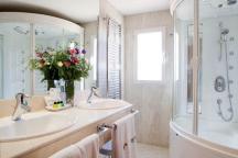 広くさわやかなバスルームは全室バスタブつきで、アメニティはインター・オリジナル。シャワージェル、シャンプー、ボディークリーム、コットンバッド、シャワーキャップと充実しています。