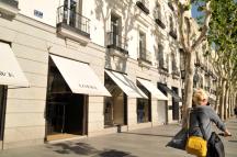 エスピリトゥ・サント通りからロエベまで、徒歩で約20分。メトロなら、歩いて5〜7分のところに2番線ノビシアド、1・10番トリブナル駅があるが、そこまで歩いたり、電車を待ったり乗り換えたりしているうちにロエベまで歩けてしまう。ロエベへ向かうエリアはゆるい下り坂になっていて、細い道が入り組んだ瀟洒な通りが続くので、どの道を通ってもコロン広場まで出ることができるが、簡単なのは、地下鉄アロンソ・マルティネスまで歩き、そこからジェノバ通りを通ってコロン広場へ出るルート。コロン広場の大きな交差点を渡り、無印良品を左手に見ながら歩いて2本目になるセラーノ通りに出れば、目の前がロエベだ!