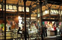 生ハム、海鮮、オリジナルタパス、ワイン、シェリー酒、スィーツ、バルなどグルメなお店が集まるガイドブックでもおなじみのマーケット。食べたいものをその場で買って持ち寄り、空いたテーブルでいただくのだが、混雑し、テーブルも人でいっぱい。牡蠣・タコ専門店のように、ワインもオーダーでき、立ったまま店先で食べさせてくれる店もある。サンミゲル市場がある場所は、マドリードきってのグルメ通り「カバ・バハ」。サンミゲル市場が混雑していたら、クチジェロス門の下に並ぶメゾン・デ・ボケロン、メゾン・デ・シャンピニオンなどおつまみの名店に行ってみよう!