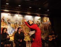 サンミゲル市場やカヴァ・バハ通りで夕食を終えた後は、のんびりとサンタ・アナ広場まで散歩をし、フラメンコの老舗ヴィジャ・ロサへ。スペイン風アラブ様式である「ムデハル」様式で装飾されたエキゾチックなこのタブラオは、100年の歴史を持つマドリードの老舗。最高のアーティスト渾身の踊りに魂を震わせて、マドリードのおさんぽを心に焼き付けよう! 夜は22:45からショーがあるが、良い席を取るならギリギリにならないこと。32ユーロ、1ドリンク付き。
