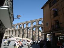マヨール広場まで続くゆるい上り坂の脇には土産店が並びます。面白い建築物などもあるのでランチまで散策を楽しみましょう。途中見晴らしの良いスポットもあるので写真を撮ったり、ユダヤ人街のマークを発見したら少しその路地も入って見ましょう。以前は監獄で今は図書館となっている建物もあります。ランチ場所は水道橋の脇なのでまた水道橋のある広場に戻ってください。