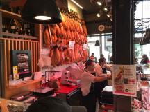 今ではスペイン各地の調味料、菓子類、酒類、チーズ、ハムなどを売る食品スタンドや、テイクアウト用の総菜を売るデリカテッセンなどが所狭しと並んでいます。