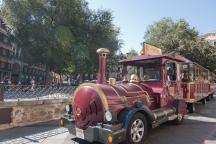 そんな便利な三角形のソコドベール広場の薬局前には、ソコトレンの発着場があります。 約30分に1本出るこの人気トレインは、足では回りきれないトレド旧市街の対岸をゆっくり周って壮大な風景を楽しませてくれる、トレド観光の人気アトラクションです。