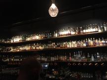 薄暗い店内には、ウイスキーやスピリッツが壁一面に並ぶバーカウンターが現れ、