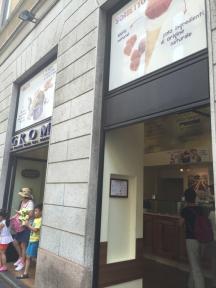 グロムは2003年5月トリノの中心地にオープンし、その後まもなくして大変話題となるジェラテリアになりました。時期によっては店内は人だかりができ、店の前には行列ができるほどの人気店です。