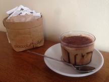 食べ方に気をつけないとコーンが崩れ、ホットチョコレートがこぼれて大変なことになりますのでくれぐれもお気をつけて!