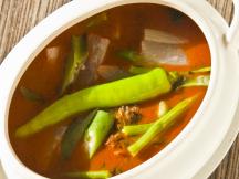 フィリピン料理は苦手という方でもトライして欲しいのが「黒豚シニガン」(395ペソ)。