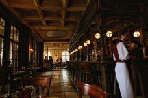 しかしながら、その内装は歴史を思わせる荘厳さで、帝政ロシアのお屋敷を思わせる趣。ここで特に有名なのは、2階席。壁高く敷き詰められた古びた本のインテリアは、プーシキンの書斎さながら。(注:2階席だと全体的に高めの値段設定の別メニューになります。)