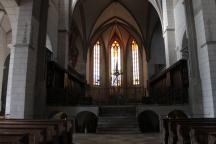 宗教戦争のとき偶像破壊主義によって内装が一部破壊された以外は、第2次世界大戦でも被害を受けていないためステンドグラスを始め、南側のやはり1000年以上前の青銅の扉も当時のまま。