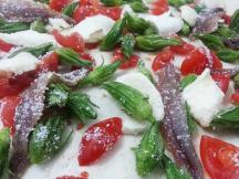 メニューは、豊富な種類の揚げ物(これもナポリの名物ストリート・フードです)に、カプレーゼ・サラダ、ミックスサラダなどを除いて、全てピッツァ。クラシックなピッツァ・マルゲリータ、キノコの、または茄子のピッツァ、マリナーラ、ディアーヴォラ、揚げピッツァに、ドルチェまでピッツァの生地を使ったものなど、ピッツァ尽くし。